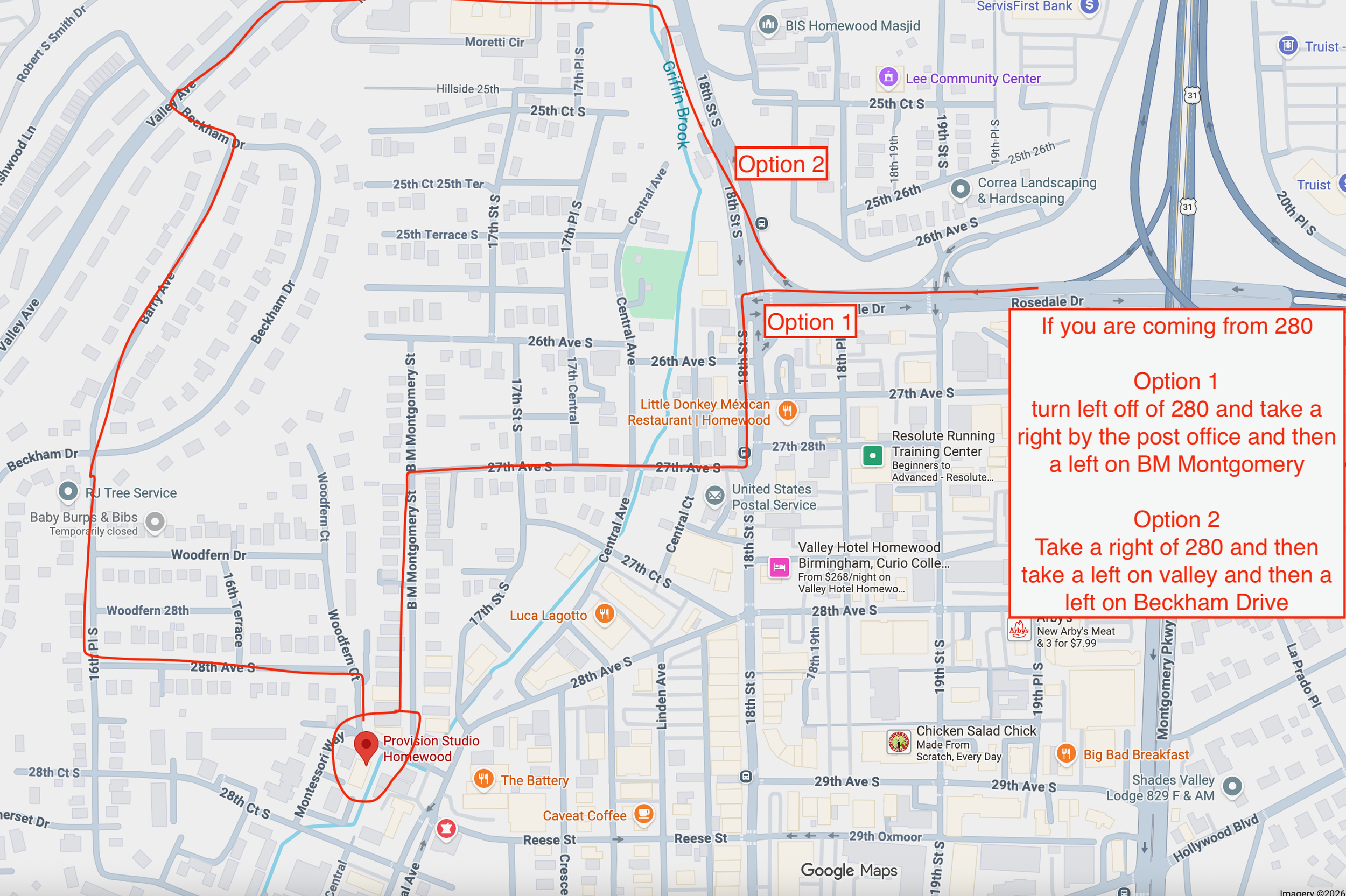 Due to a 5K in Homewood this Saturday, 3/14, you should allot yourself a little more time to get to class in Homewood. Below are a few options that may help you navigate road closures. Don’t hesitate to reach out to us with any questions! Call or text us at 205-613-1378