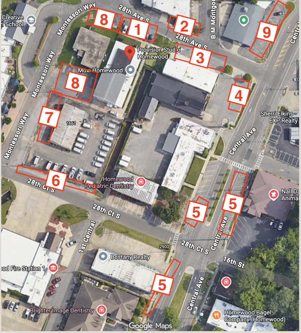 All the spaces in front & behind of the old BellSouth/AT&T Building